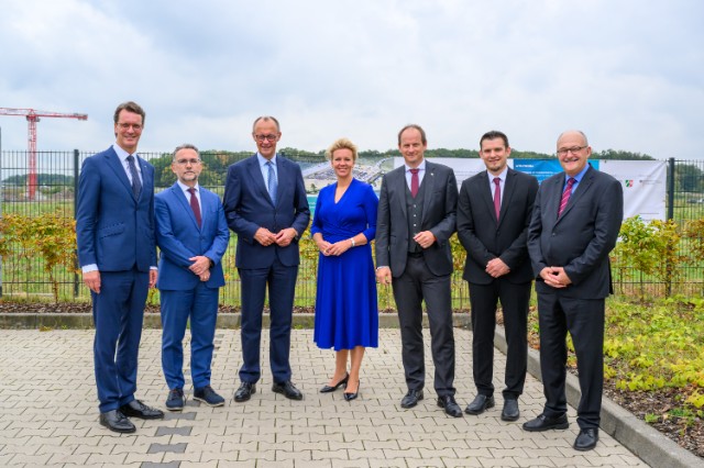 As part of his first official visit to North Rhine-Westphalia, German Federal Chancellor Friedrich Merz was joined by Hendrik Wüst, Minister-President of the State of North Rhine-Westphalia, and Ina Brandes, Minister of Culture and Science of North Rhine-Westphalia, in visiting the Fraunhofer Research Institution for Battery Cell Production FFB, where they viewed a sample line for complete battery cell production on a smaller scale. In conversation with the Chancellor, Constantin Häfner, Executive Board Member for Research and Transfer, and the Fraunhofer FFB directors stressed the importance of battery research in terms of value creation and Germany’s technological sovereignty.